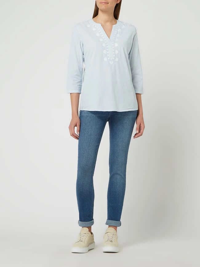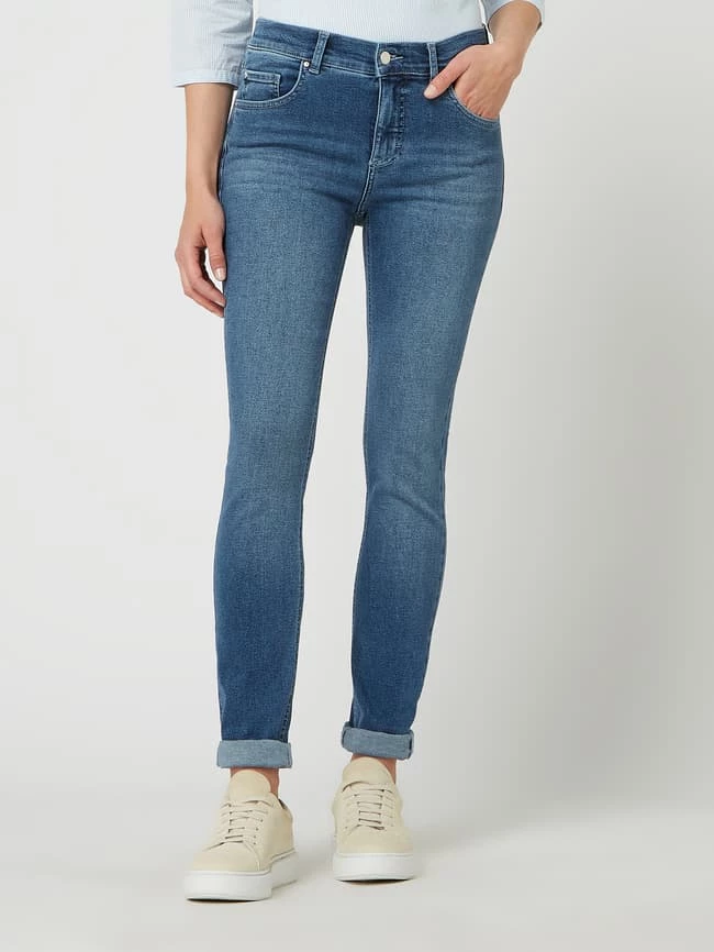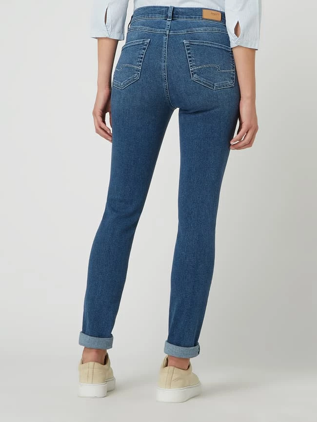 Die Jeans von ANGELS ist aus einer Baumwollmischung mit Stretch-Anteil gefertigt. Sie zeigt sich in schmaler Passform mit verschiedenen Taschen und Label-Patch. Die Passform untermalt eine schlanke Silhouette.